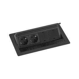 HPF Einbausteckdose Duplex-Q, 2 Stk. Schukosteckdosen, schwarz